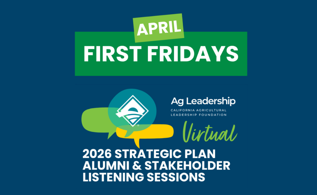 Growing leaders who make a difference Ag Leadership Program Class 55 Meet the Fellows of Class 55 and learn about the leaders shaping the future of California agriculture. MEET CLASS 55 Blog Growing the Roots of Ag Leadership Annual Appeal Your generosity is what allows the seeds of Ag Leadership to grow deep roots. LEARN MORE GIVE TODAY! CA Ag Leadership Blog Blog Read the Ag Leadership Blog for stories and insights from fellows and alumni shaping the future of California agriculture. READ OUR BLOG Alumni page GROWING LEADERS WHO MAKE A DIFFERENCE What is Ag Leadership? The California Agricultural Leadership Program is an advanced leadership development experience for emerging or mid-career leaders in agriculture. It is considered to be one of the premier leadership development programs in the United States. Prospective Applicants Learn About the Program Leading the Way 1,500+ GRADUATES OF THE PROGRAM 55 YEARS SINCE THE PROGRAM BEGAN 17 MONTHS TO COMPLETE THE PROGRAM 24 FELLOWS IN EACH CLASS Upcoming Events Apr 01 Common Threads North 2026 Dinner & Awards Join us as we celebrate and honor the 2026 Common Threads North Honorees! Learn More Apr 03 April First Friday Join us for the virtual April 3 First Friday! The topic will be a Strategic Planning Listening Session led by CALF President and CEO, Lesa Eidman. Learn More Apr 25 Region 7 Alumni Cal Poly Baseball Social – April Join CALF Region 7 Alumni for a fun afternoon socializing and watching Cal Poly Baseball from the Krukow Klub! Learn More More Ag Leadership Events